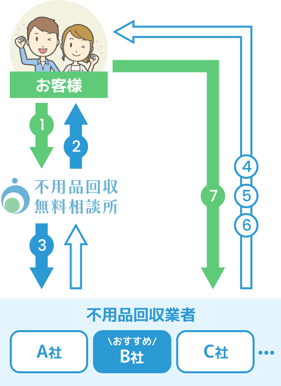 実は、2年前に不用品回収業者を利用したときに、見積りよりも高額な請求をされたことがありました。その時は急いでいたのでお金を払ってしまいましたが、後になって思うともったいなかったなと、ずっと悔しい想いをしていました。なので、今回は被害にあわないようにちゃんとした業者を探そうと思っていたら、このサービスを見つけました。前回の話をお伝えしたうえで親身に話を聞いてくれたので信用できました。不用品回収業者も紹介してもらった当日に見積りに来てもらいました。正直、周りの目も気になるので、昼間誰もいない時に回収したいというお願いも聞いてくれたので大満足です。
